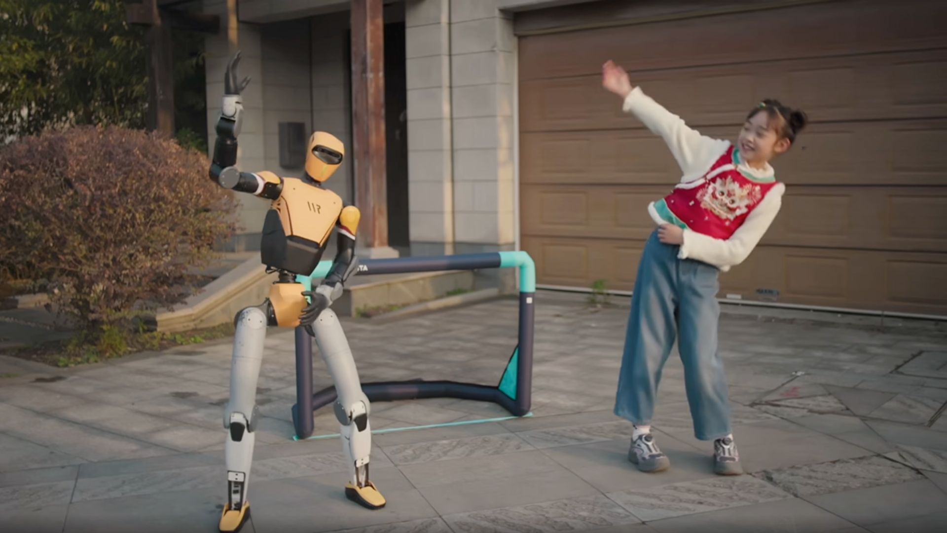 Read original articleChinese startup Westlake Robotics has unveiled Titan 01, a humanoid robot powered by its proprietary General Action Expert (GAE) AI foundation model, which enables real-time imitation of human movements with high precision and fluidity. During a demonstration in Hangzhou, Titan 01 replicated an operator’s actions—including waving, turning, and kicking a ball—within milliseconds by using a motion-capture suit. The GAE model acts as a central coordination system akin to a "general-purpose cerebellum," allowing the robot to maintain balance, coordination, and smooth motion execution even with unpredictable movement changes. It can also adapt to different users and control multiple robots simultaneously, all performing synchronized tasks.