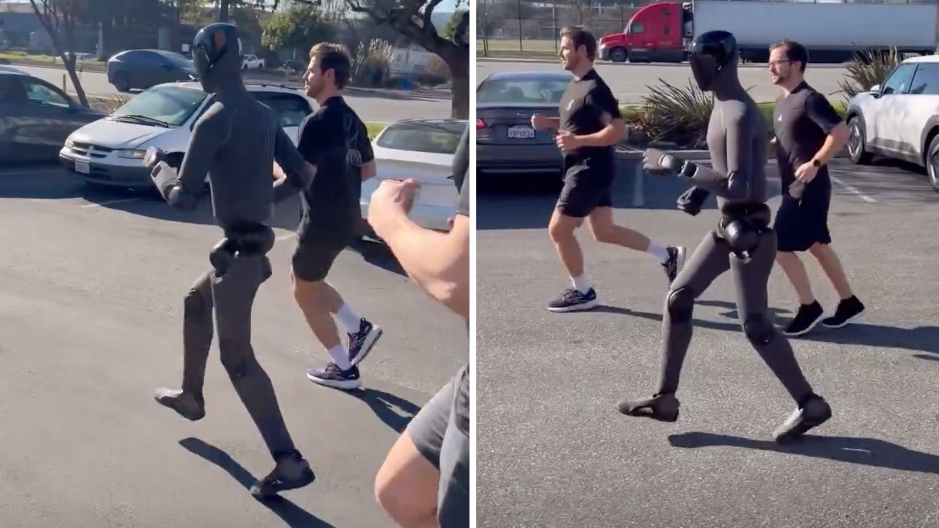 Read original articleCalifornia-based robotics company Figure AI has released a video showcasing its latest humanoid robot jogging outdoors alongside company employees, demonstrating significant advancements in bipedal locomotion. The robot exhibits a fluid and natural running gait, closely mimicking human biomechanics, a marked improvement over earlier robotic movements. However, it remains unclear whether the robot was operating autonomously or under remote control during the run, a detail critical to assessing its level of independence.