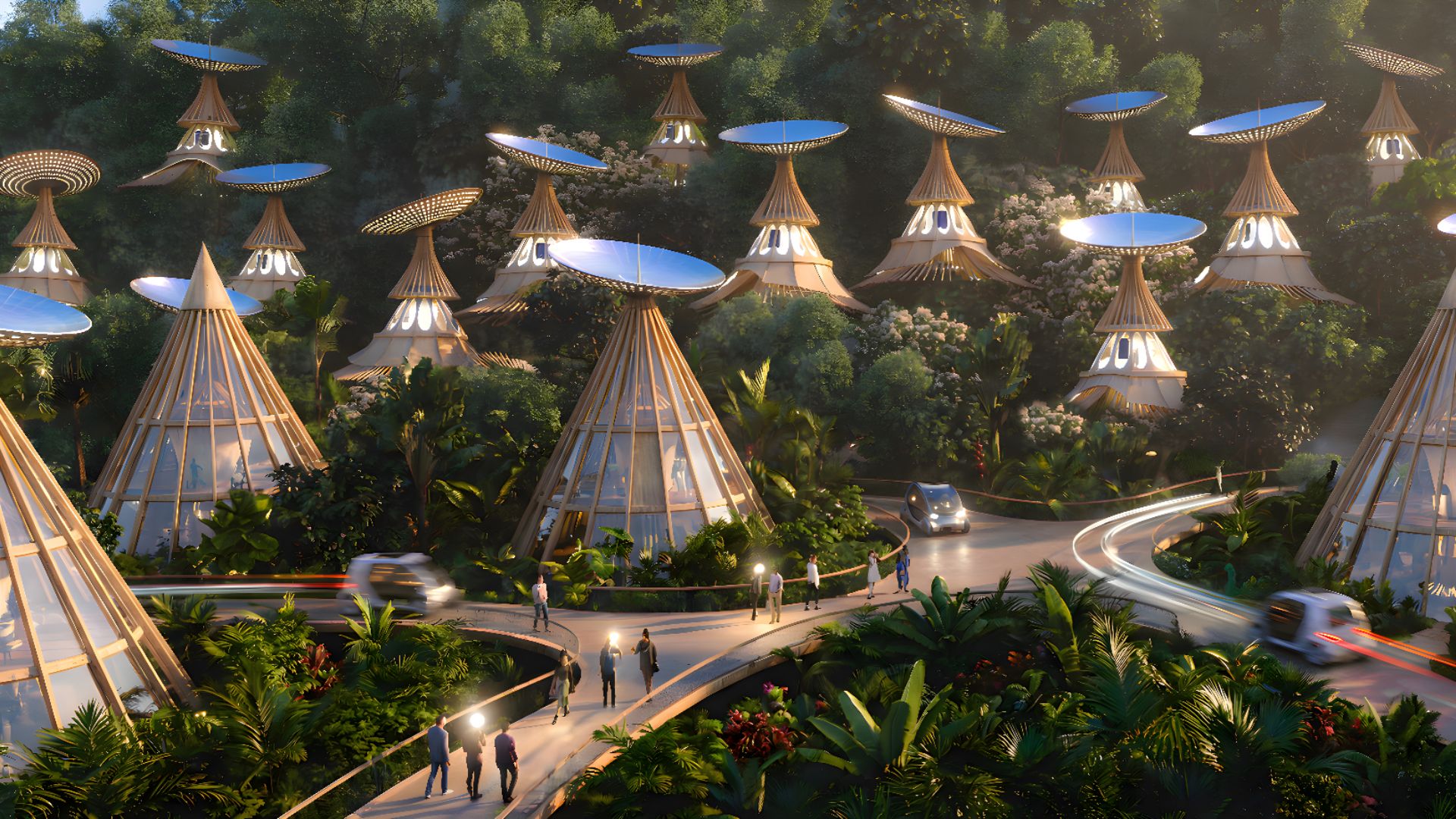 Read original articleThe Fiji Solar Crown, developed by MASK Architects in collaboration with TesserianTech, is an innovative solar-integrated living system designed to address energy and water challenges in island nations like Fiji. This system features a Dual-Axis Concave Mirror Crown that transforms residential units into self-sustaining power plants, combining cultural respect with advanced engineering. Inspired by traditional Fijian bure architecture, the design replaces the roof apex with a parabolic solar mirror that tracks the sun with dual-axis rotation, optimizing solar energy capture while also harvesting rainwater and providing shading to create a cooled microclimate.